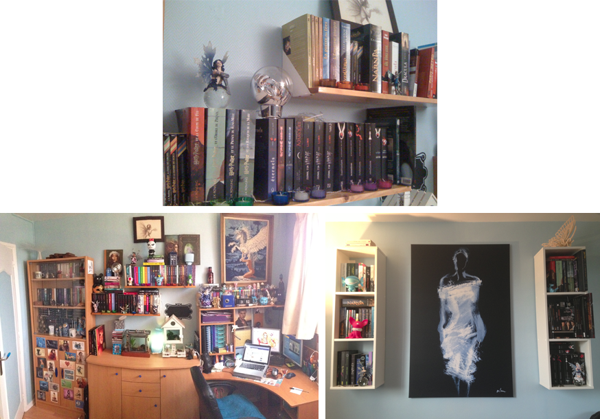 Côté bibliothèque, comme je vous le disais juste au-dessus, elle a bien évoluée et s’étale de plus en plus dans ma chambre. Je n’en reviens pas d’avoir accumulé autant de livres, c’est assez dingue! En commençant avec seulement deux étagères, je ne pensais pas en arriver là 2 ans et demi plus tard…